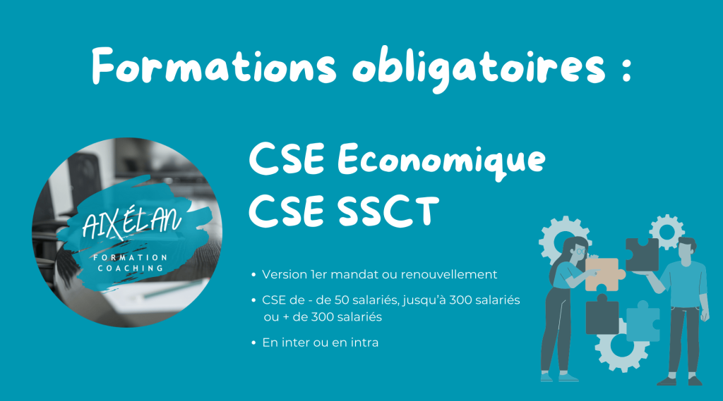 Aixélan est un organisme de formation agréé par la DREETS PACA pour les formations obligatoires : CSE Économique et CSE Santé, Sécurité et Conditions de Travail (SSCT).