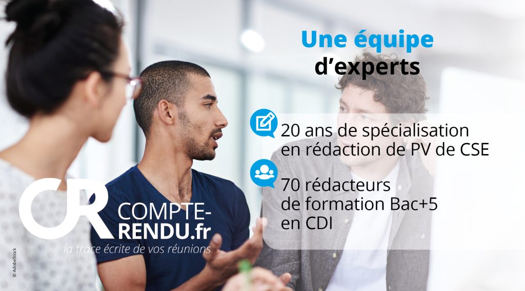Avec son équipe de plus de 70 salariés habitués à retranscrire les enjeux du dialogue social depuis bientôt 20 ans, Compte-rendu.fr est un véritable partenaire de confiance pour les CSE. En effet, plus de 1.400 CSE lui délèguent déjà leur rédaction de PV de réunion.