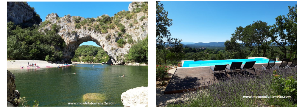 A proximité du mas de la Fontenette, il y a de très nombreux sites à découvrir comme les Gorges de l’Ardèche, la somptueuse arche naturelle du Pont d’Arc, la Grotte Chauvet (avec ses peintures néolithiques),  l’Aven d’Orgnac (une splendide grotte), d’innombrables dolmens (plus de 800 dolmens en Ardèche), les vieux villages classés, etc.