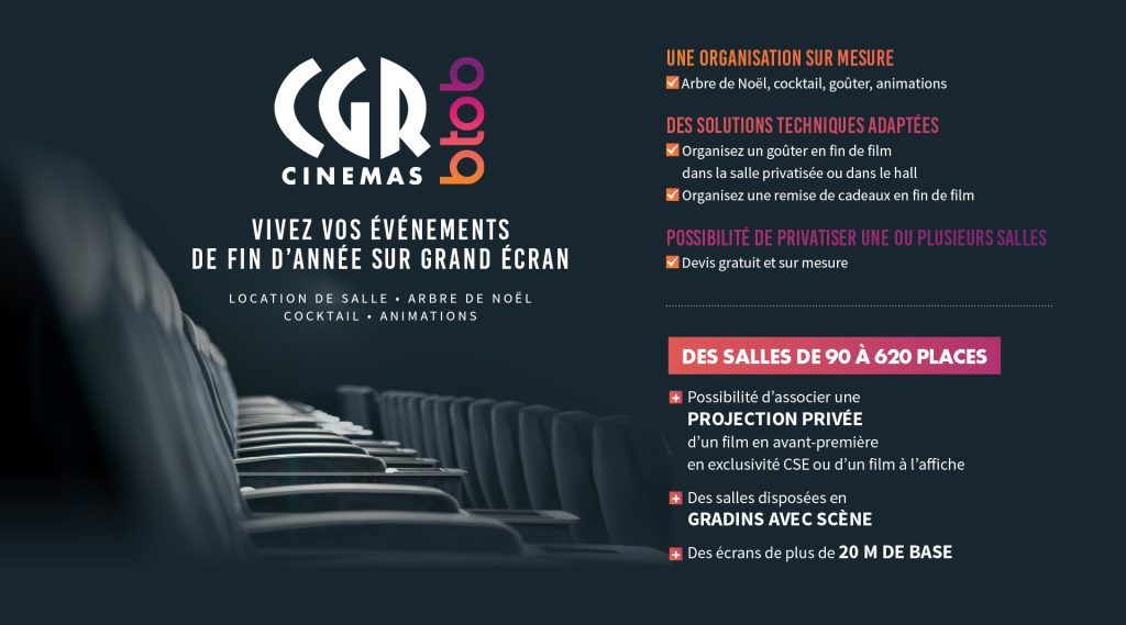 Le groupe CGR est positionné comme le deuxième exploitant cinématographique français avec 73 établissements. Groupe familial et indépendant français dont le siège social est basé à La Rochelle, il se positionne aujourd’hui clairement comme un acteur majeur de la profession, engagé socialement avec passion pour favoriser l’accès aux œuvres cinématographiques au plus grand nombre.