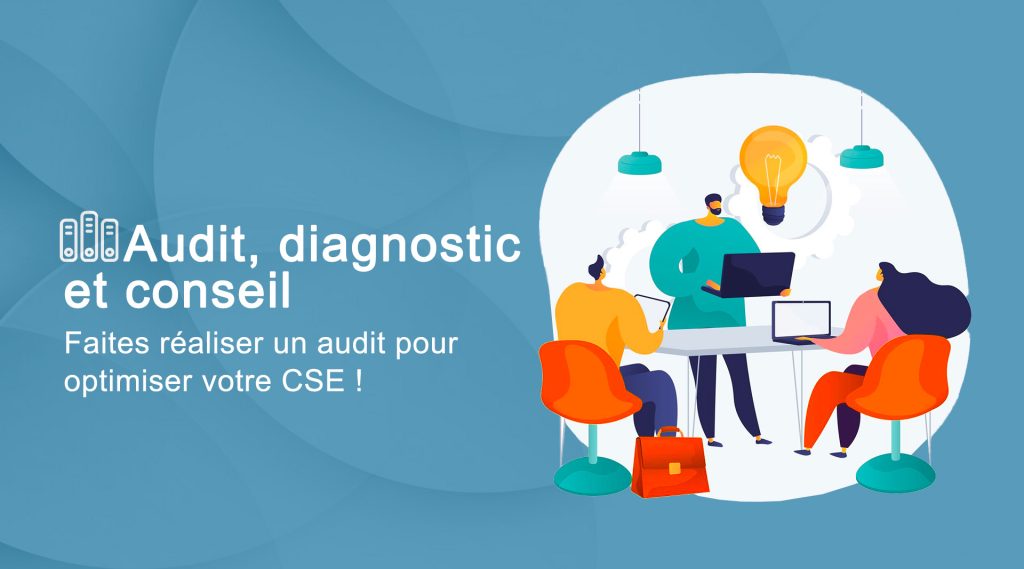 • Audit, diagnostic et conseil : optimisez le fonctionnement de votre CSE selon ses ressources et moyens disponibles, grâce à un audit suivi d’un accompagnement et de conseils : solutions pratiques, organisation, outils à mettre en œuvre.