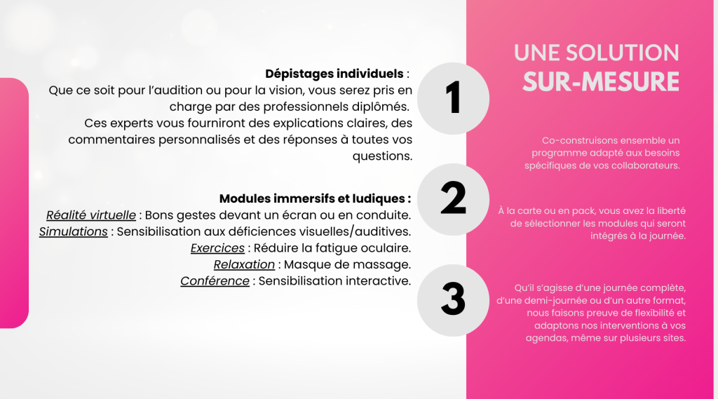Investir dans la santé visuelle et auditive de vos collaborateurs, c’est investir dans leur efficacité et leur qualité de vie.