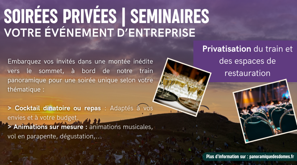 Qu’il s’agisse de proposer une sortie détente, une escapade culturelle ou une activité fédératrice, le Panoramique des Dômes offre un cadre exceptionnel au service des valeurs du bien-être, du partage et de la découverte.