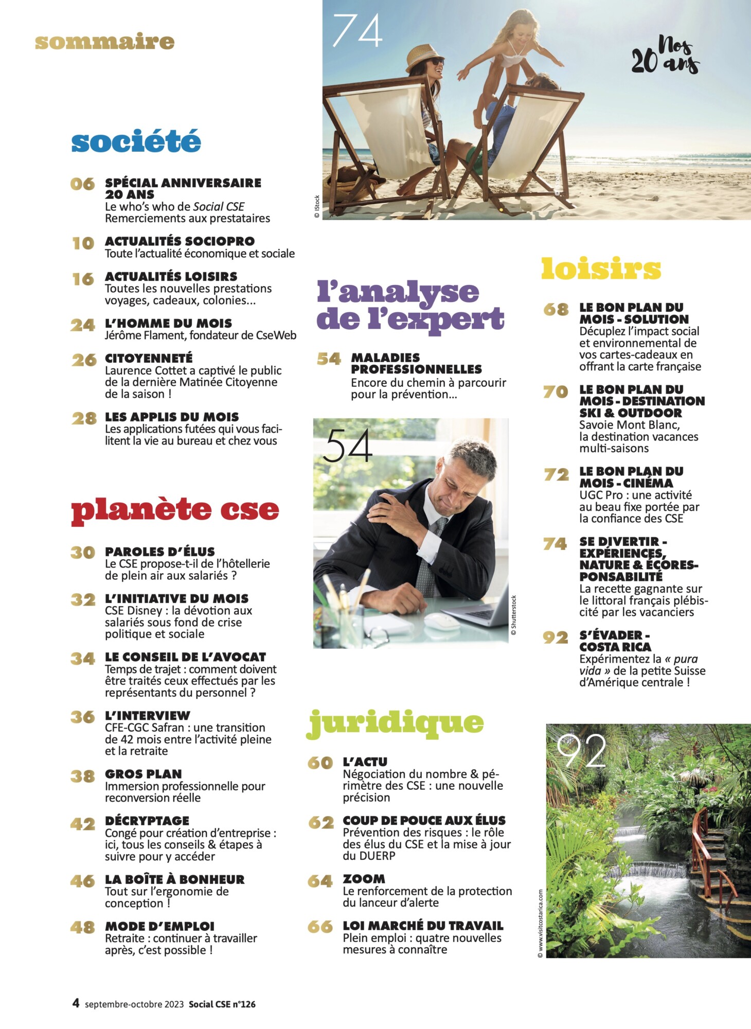 Retrouvez les dossiers spéciaux sélectionnés par la rédaction dans le magazine Social CSE, Septembre/Octobre 2023, N°126: