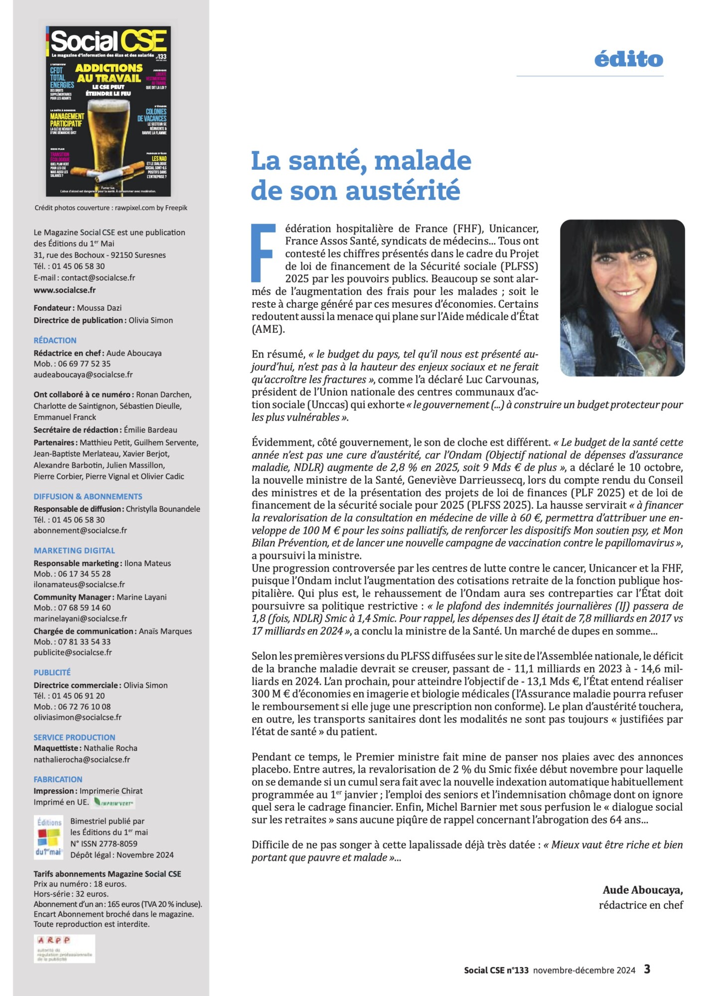 Retrouvez les dossiers spéciaux sélectionnés par la rédaction dans le magazine Social CSE, Novembre/Décembre 2024, N°133 :