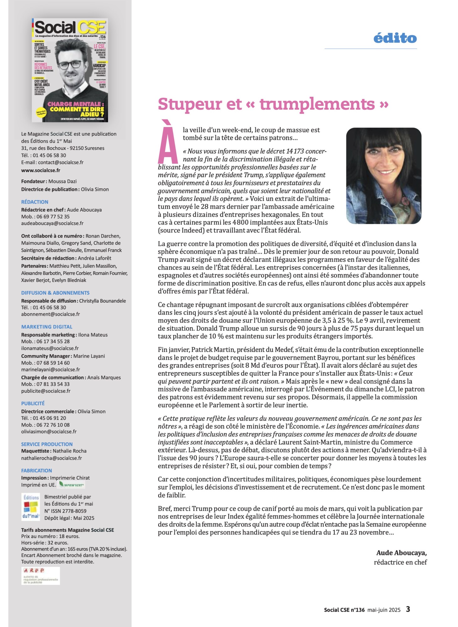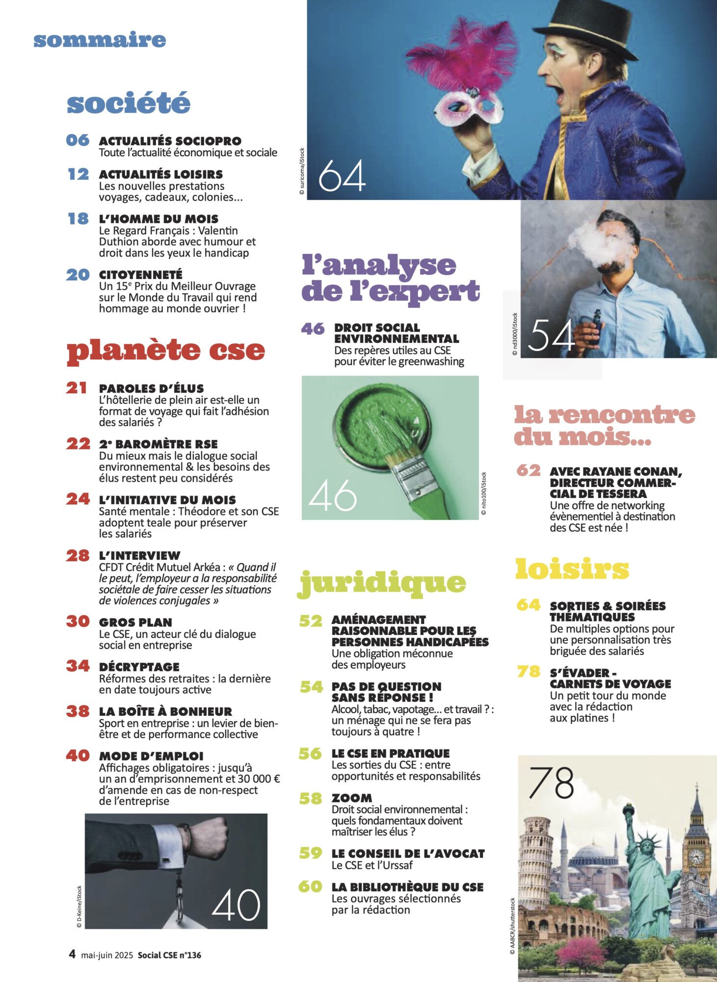 Retrouvez les dossiers spéciaux sélectionnés par la rédaction dans le magazine Social CSE, Mai/Juin 2025, N°136 :