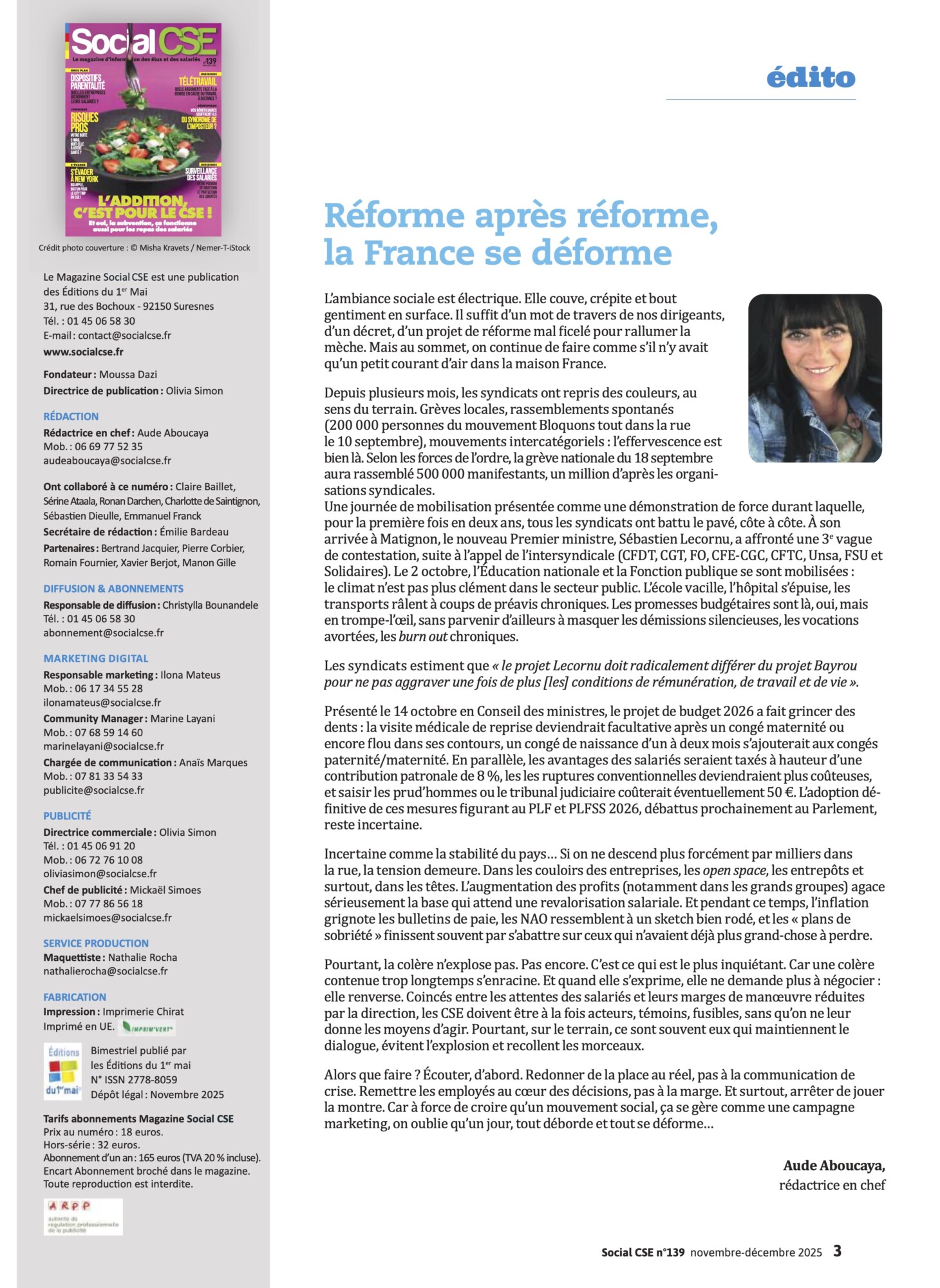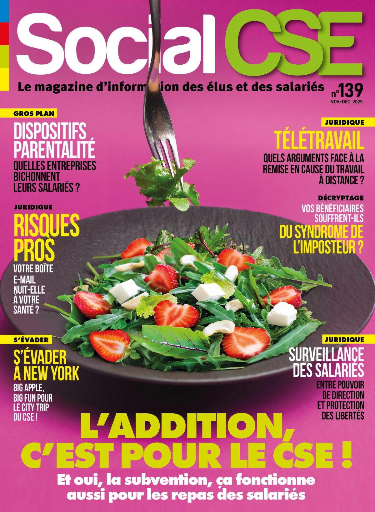 Retrouvez les dossiers spéciaux sélectionnés par la rédaction dans le magazine Social CSE, Novembre/Décembre 2025, N°139 :