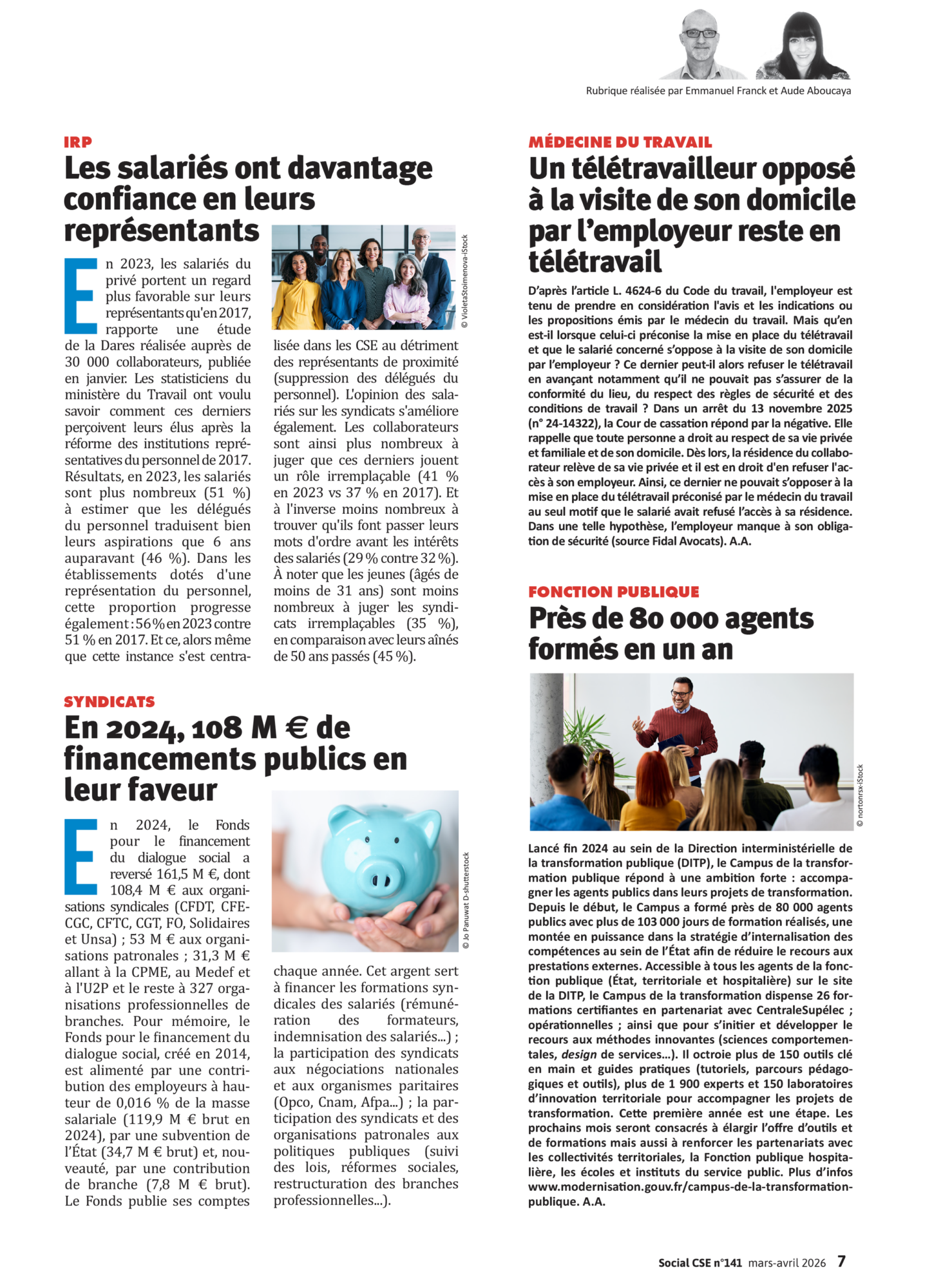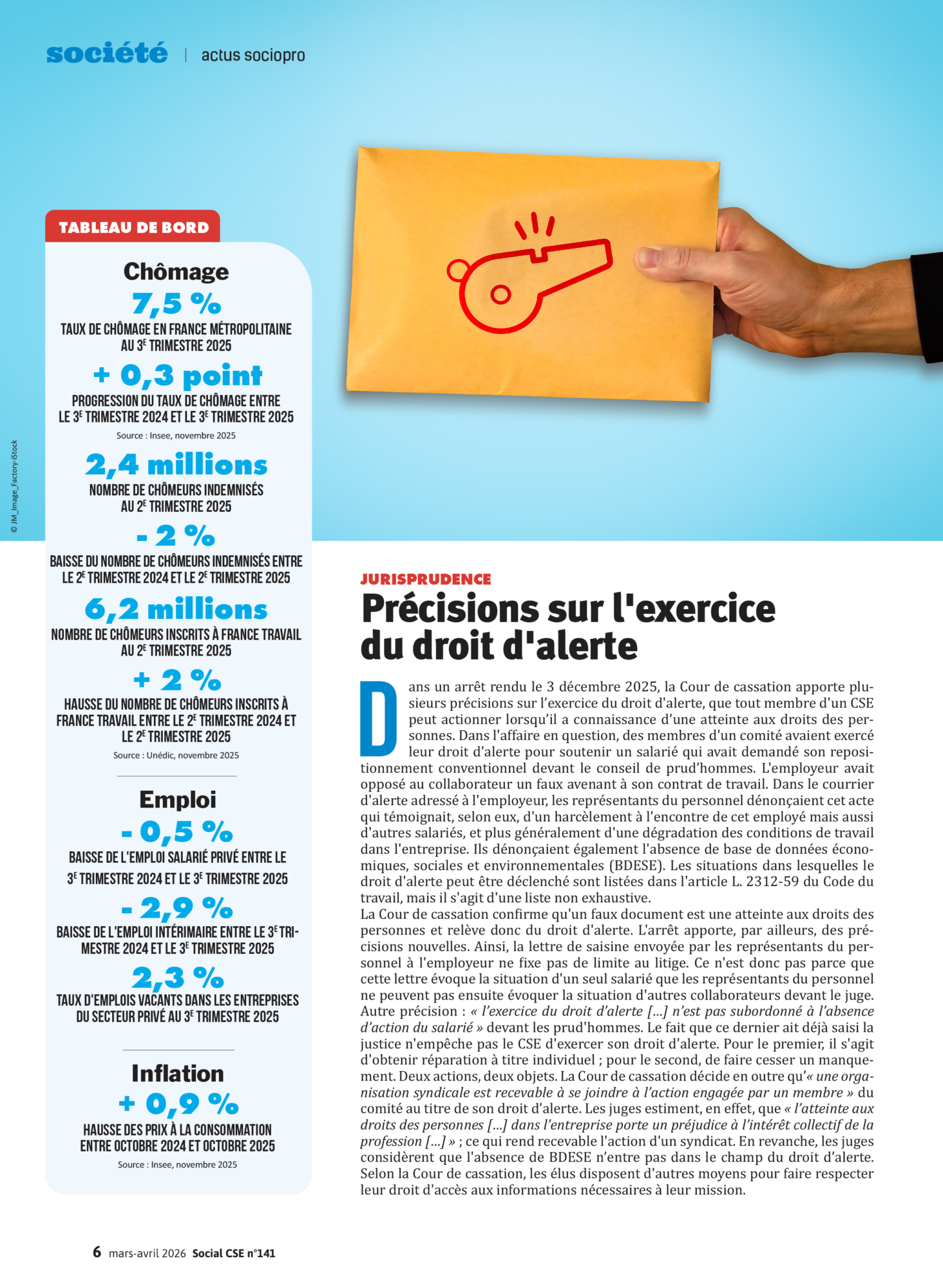 Retrouvez les dossiers spéciaux sélectionnés par la rédaction dans le magazine Social CSE, Mars/Avril 2026, N°141 :
