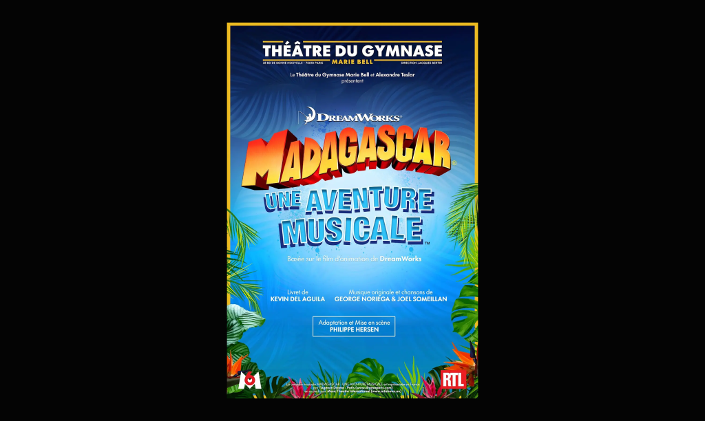 ⭐ Alex, Marty, Melman et Gloria débarquent à Paris pour venir colorer l’automne de la capitale ! Tes héros préférés de la saga Madagascar te donnent rendez-vous au Théâtre du Gymnase pour 1h30 de spectacle inoubliable dans Madagascar, une aventure musicale ! Pour la première fois en France, après les succès retentissants de Broadway et de Londres, cette comédie musicale pleine de rebondissements réjouira toute la famille !