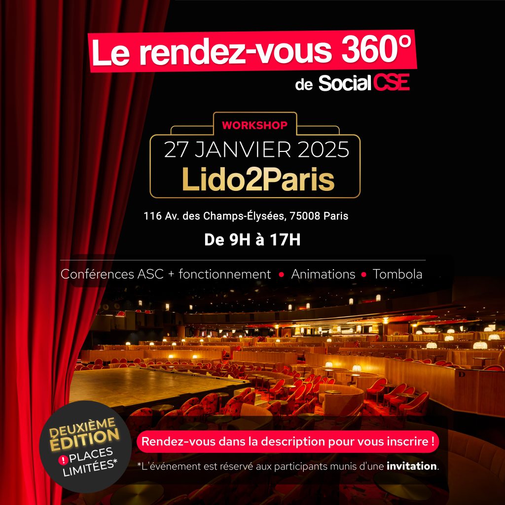 L’événement incontournable « Le rendez-vous 360° de Social CSE » revient pour une quatrième édition exceptionnelle, le 20 février 2026 à La Seine Musicale pour une nouvelle journée d’échanges. 🌟 Un programme riche et varié vous attend : Informations pratiques :📍La Seine Musicale, 1 Île Seguin, 92100 Boulogne-Billancourt📆 Le vendredi 20 février 2025⏰ de 9h00 à 18h00 ℹ️ Pour […]
