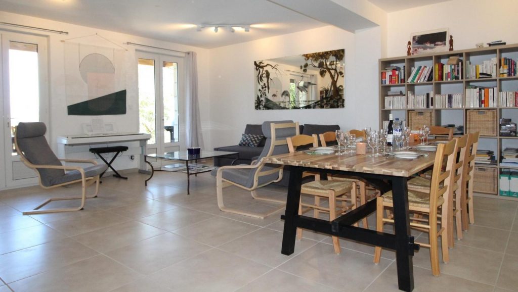 Très grand salon avec cuisine ouverte. Le soleil se lève côté cuisine ouverte et se couche côté salon, ce qui donne une très grande luminosité intérieure. WIFI ultra rapide (fibre optique). Suite parentale avec lit 160 x 200, 2ème chambre avec lit 160 x 200 et 3ème chambre avec 2 lits en 90 x 190. Grande terrasse (avec vue fantastique sur les Cévennes) sur laquelle on peut manger toute l’année.